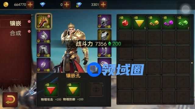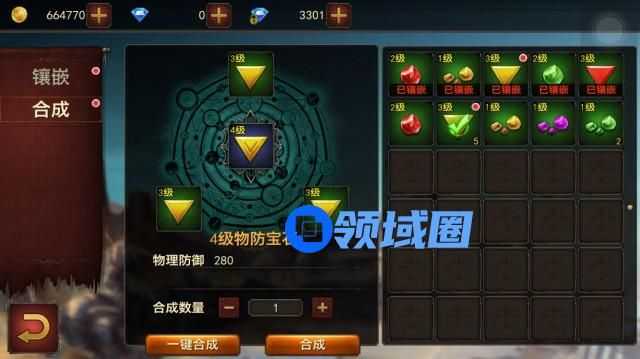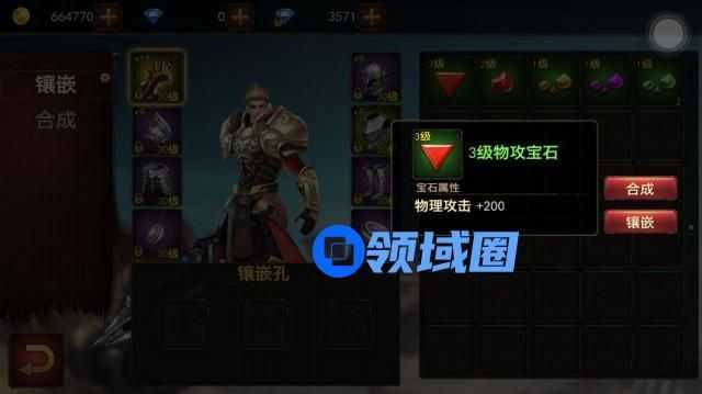 当然,通过副本掉落和神秘商店购买的宝石等级是不能保证的,所以为了最大限度提升战斗力,我们可以通过合成的方式把等级低的宝石做成等级高的,每次可以选择三颗同属性的宝石进行合成,步骤非常简单,合成后的高级宝石能使战斗力成倍增长哦!