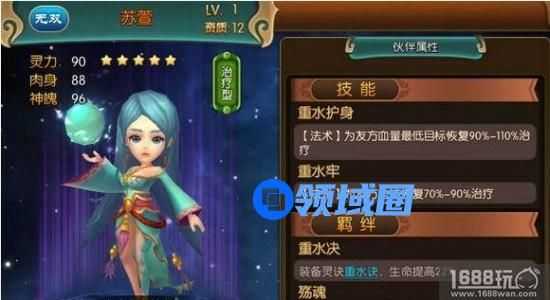 苏萱属于5星小伙伴,是治疗型的,灵力90、肉身88,神魄96。