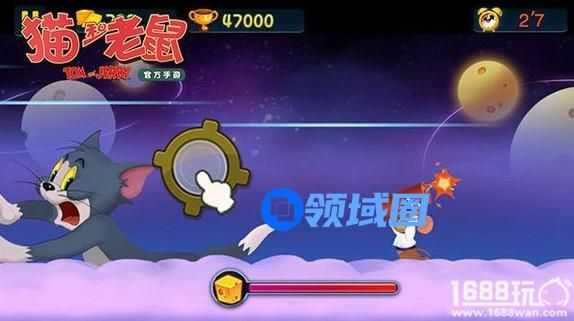 右上角的是欢乐度的进度,当萌萌的小老鼠欺负了汤姆猫之后就会增加,满了之后可以提高得分倍数。