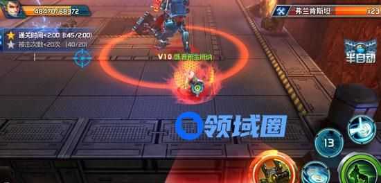 回旋战盾是美国队长的招牌技能了,少尉估计拜师了队长也学到了这招,升到顶级的回旋战盾不仅带有跟踪效果,而且会在敌人之间来回反弹和击倒,造成大量伤害并控制敌人,所要在击打成群的敌人的时候往往效果更好,效果增强:扇形范围→反弹击退→跟踪击飞。