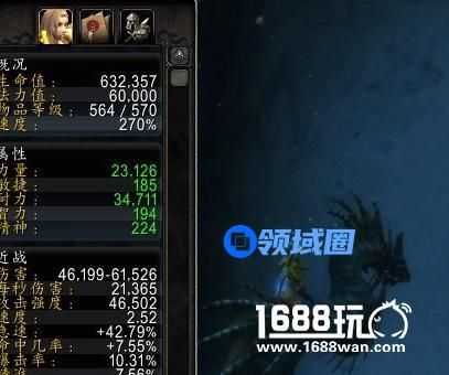波塞冬斯的缰绳的速度:右上角坐骑buff名称为“驯服的海马”。注意到人物面板属性,速度为“270%”。