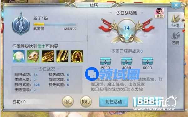 玩家在征伐战功界面可以查看到征伐等级可购买的物品以及在本周战功可兑换的东西,方便玩家查看今日的战斗状况。