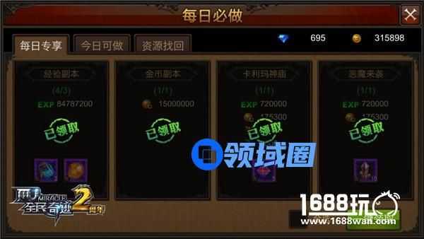 一键领取功能固然好,但在目前版本的《全民奇迹MU》副本系统中,除日常副本、多人副本与跨服副本三部分能够一键领取之外,剧情副本与万魔塔虽然也能进行扫荡,却还是需要勇士们亲自到副本系统界面中去完成才行。