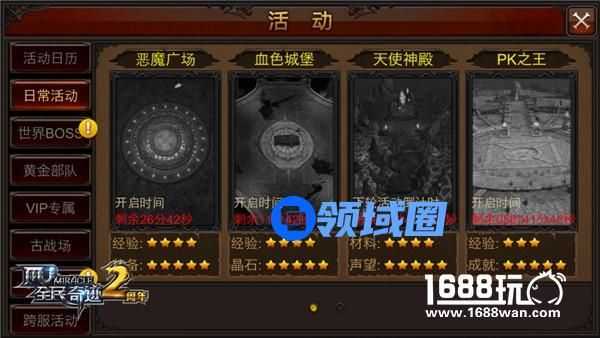 在跨服技术尚未出现,跨服功能尚未开放之前,服务器内部的日常活动一直都是勇士们每天最重要的冒险内容。虽然一键领取功能能够领取到3次恶魔广场与血色城堡的奖励,但对于大多数高玩们来说,剩下的次数却还需要逐一完成;而天使神殿、PK之王与阵营战,虽然仅仅是服务器内部的小范围竞技,但凭借着不菲的奖励额度,仍旧是如今勇士们日常中不容错过的选择。
