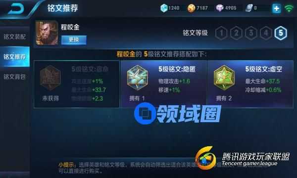 画眠推荐的铭文推荐为输出+防御并重,宿命+隐匿+虚空,提升了攻击力和移动速度,同时加强了其生命和防御,而怜悯提供的冷却缩减让程咬金有机会放出