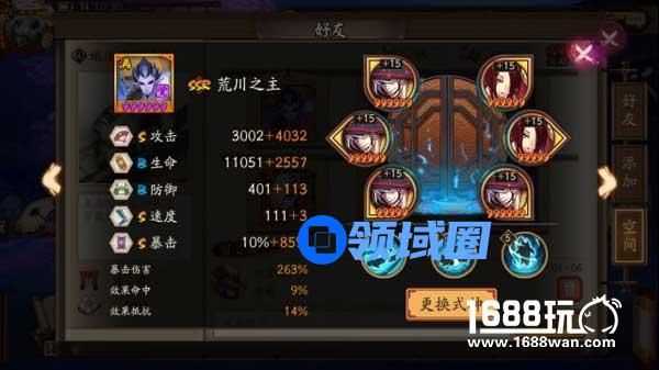 属性如上,离完美还有点距离,不过不妨碍使用。他和妖刀是最强的两个快节奏的单体输出,只是被克制的御魂不同而已。荒川在需要普攻过度的时候强于妖刀,但是这呆比自身降防确实很捉急。斗技我给荒川的主力阵容是阎魔+镰鼬+狸猫+打火机。