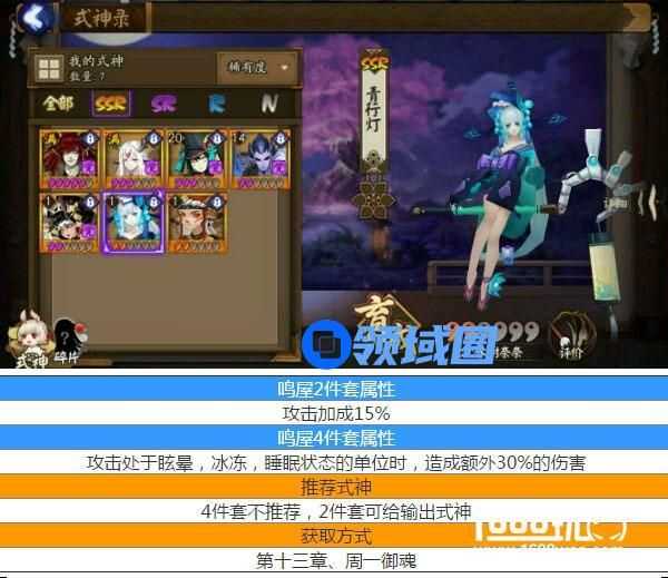 1速246散件5星琴师、2速暴击鸣屋6星灯姐、3速招财5星座敷、4速返魂香5星兵俑、5速魍魉100命中5星般若(6星地藏酒吞/5星木魅老头/5星蚌精一目连/5星日女雪女)。