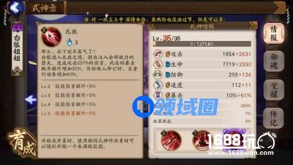 白狼是一个典型的破势系式神,并且是强力的破势爆伤系式神。所以在御魂选择上,我们主要的思路是在能够堆满暴击基础上考虑爆伤。那么,就有接下来的御魂选择。