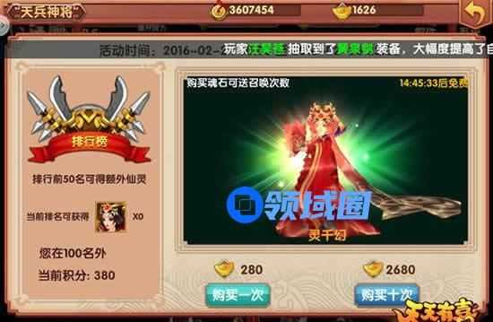 当然,如果你有足够的通宝或者铜币,可以直接到商店道具中购买橙宠宝箱,或是在千幻殿、天兵神将、藏宝楼中进行抽奖,尤其是天兵神将,这里简直就是仙宠的 诞生福地。游戏中积极的做任务参与活动也会有各种礼包奖励,其中不乏仙宠仙灵噢!不过小编在这里建议大家,由于前期橙宠仙灵较难收集,所以先着重培养紫 宠,如果有足够的蓝宠碎片,也可以优先培养。