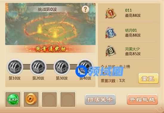 点击开始挑战进入副本,如果觉得关卡难度无法通过,还可以重置关卡数从第一关开始哦。