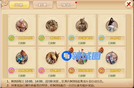 5、世界BOSS每日10:00、14:00、22:00均会刷新一次