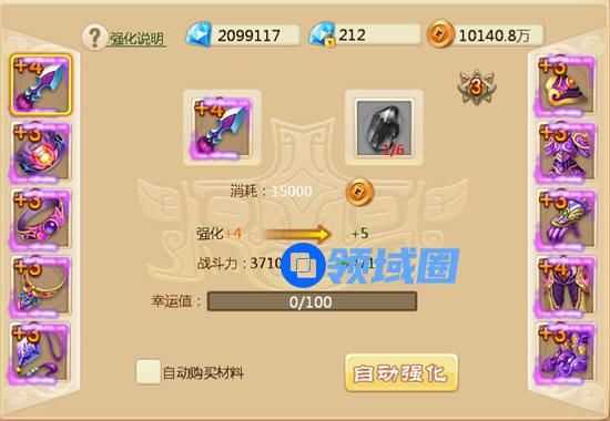 3、强化消耗强化石,强化失败不掉级,每次强化都会获得幸运值,幸运值越高越容易强化成功,成功后幸运值清零。