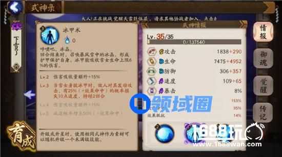 1.雪女的4号位,具体带抵抗还是命中,要看自己的一速式神,速度太低还是建议带抵抗