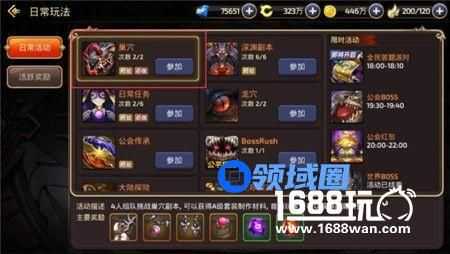 龙之谷中有很多日常玩法,这些日常活动中,有的会给玩家提供经验帮助大家快速升级,有的会提供材料,帮助玩家制作装备或者升级其他属性,提高自身战斗力,还有一部分则是娱乐甚至于PVP模式。今天我们就来介绍其中一个既能获得大量经验,还可获得制作装备材料的活动——巢穴。当玩家游戏中升到20级时,我们就可以参加一个新的日常活动,也就是我们今天即将介绍的活动——巢穴。巢穴进入条件要求玩家等级最低20级,最多允许4人组队一起进入,当然如果后期你战力等级高了的话,自己单挑也是没问题的了。巢穴每天有2次进入机会,当然在两次机会都用完以后,我们还可以再用龙币再购买一次机会。所以小伙伴们一定要好好珍惜每天的这3次任务,不要平白浪费掉了,那可是会损失很多经验跟材料的呢。还有一点要注意的是,巢穴进入也是需要消耗体力的,如果体力不足的话,同样也是无法进入巢穴进行战斗的。
