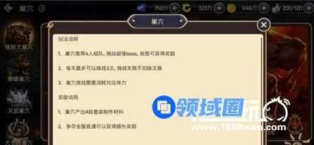 关于巢穴的基本信息就先介绍到这里,小伙伴们抓紧时间去和好基友一起去刷巢穴吧。哪怕前期打不过也没关系,我们可以一次次的再来,毕竟失败是不会扣除次数和体力的嘛。