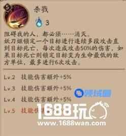 5段普通攻击合集500%输出,重点是不消耗鬼火,也就是白送的输出啊有木有,关键时刻还能给自己奶一口,挂机更放心。如果是打鬼王的话推荐换上针女套装,因为回合数足够多让你攒被动,针女的多段爆炸输出让你的酒吞童子更加耀眼!