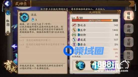 破势:对70%以上的敌人造成额外40%伤害,适合白狼,荒川等等高百分比加成的式神带,当然是在第一阶段啦