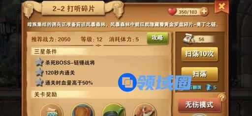 2) 达成3星评价后,可开启扫荡功能(消耗扫荡券)