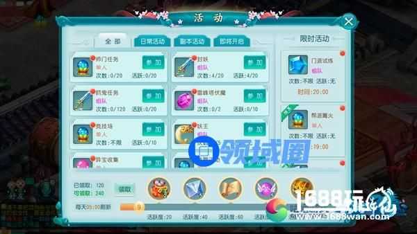 活动分为日常活动玩法,副本活动玩法,还有限时活动玩法。日常活动中的玩法有一定的等级要求,达到等级全天都可以参加完成。完成后可以获得经验和大量的金币、银币奖励,每天凌晨5点刷新日常任务次数。