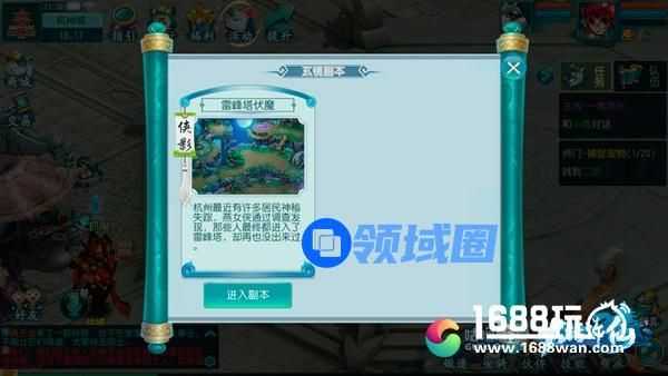 副本活动,雷峰塔伏妖,50级开启,需要5人组队参与,可获得洗练石,定光图纸等物品。
