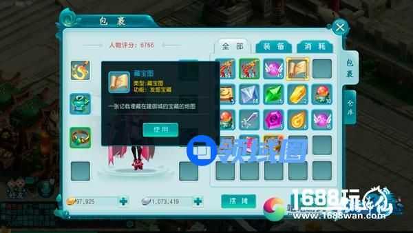 藏宝图玩法,玩家通过背包里的藏宝图,可以在世界各地挖宝,挖宝可获得金宝箱,装备,跳舞邀请函等各种稀有物品。完成日常任务中的师门任务、封妖、抓鬼任务、竞技场、异宝收集、跳舞活动、欢乐骰子都能获得相应的活跃度奖励,活跃度达到20、40、60、80、100时可获得物品奖励,奖励内容可以提前预览。