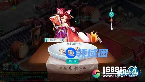 欢乐骰子,25级开发,单人活动。玩家每天可参与5次,参与活动可获得经验,银币,阵法碎片,藏宝图等奖励。