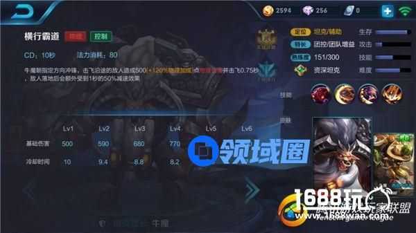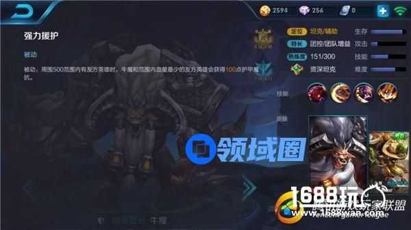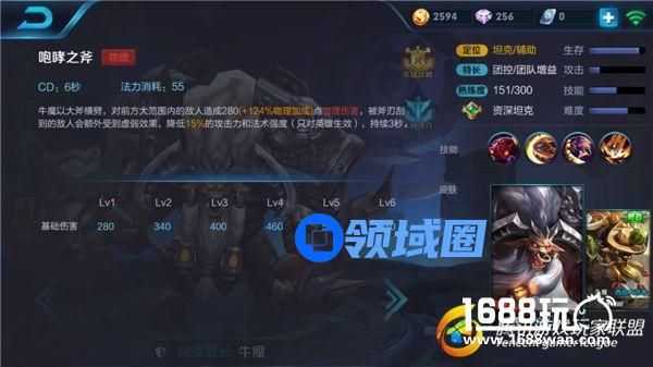 解析:这是体现牛魔辅助英雄的根本,让我方低血量的英雄得到持续的保护。虽然不能起到免死金牌的作用,但在保护我方脆皮英雄上还是很有意义的,能抵御一定来自敌人的伤害,关键时刻甚至可以保证生命安全;另一方面可让牛魔加强双抗,让牛魔前期十分耐扛,有能力和敌人打出持续的消耗。一技能:咆哮之斧