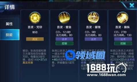 技能解析:被动技能:无论技能还是普攻都可以为张良叠加印记,叠加3次造成真实伤害。这个技能可以为张良提供一定的输出能力,但是不要太刻意的使用普攻A人,毕竟张良是一个脆皮法师,很容易被近身击杀。一技能:张良的控制技能,形成的言灵壁垒,可以使触碰的敌人眩晕,无论是救人还是留人,都是一个不错的技能,在野区等狭窄地形能发挥极大优势。二技能:张良的多段范围输出技能,可以为张良叠加多次被动咒印,装备成型后配合大招使用,可以秒杀脆皮。