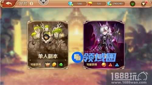 在主城的最左边,可以看到冒险系统的入口。冒险系统分两种副本,一种是单人副本,另一种是组队副本。