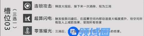 槽位02技能选择建议:这个槽位建议大家选择第三个共鸣技能,因为游戏中的霸体目标还是比较少的,并且普遍比较肉,因此有机会叠加三消的BUFF。槽位03