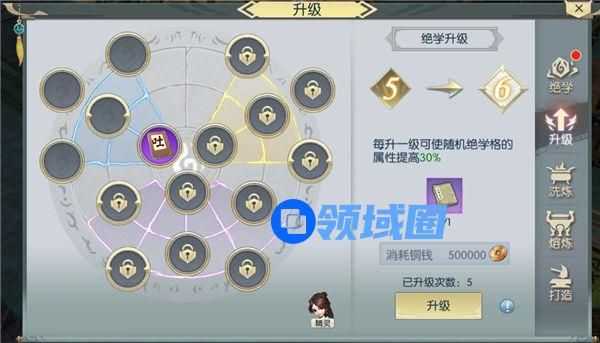 绝学是可以升级的,升级需要消耗铜钱和武学精要,并且绝学升级是随机升级的。