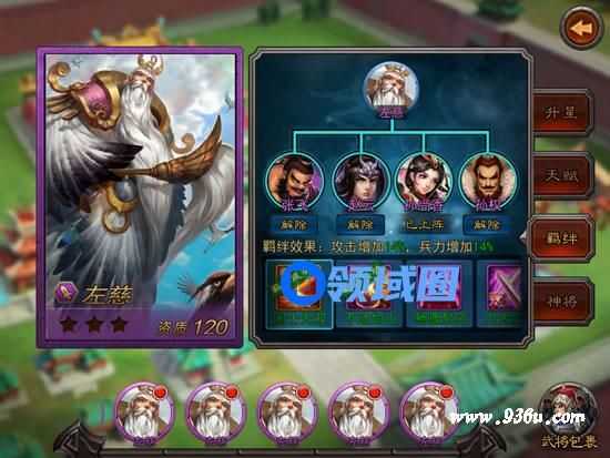 5.0版本中,武将羁绊会新增一个属性,需要的羁绊材料正是左慈,百分比属性增幅令这条羁绊拥有极高的性价比,类似于赵云,在左慈数量较少的情况下,依然可以通过羁绊的形式去增幅全队。