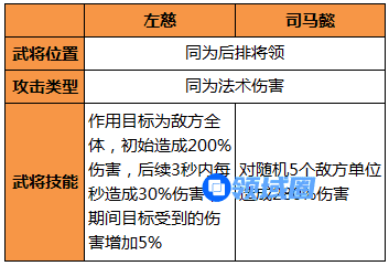 在5.0版本战斗机制优化的大环境中,孙尚香单体爆发已现疲态,单将无法再对敌方中后排构成秒杀威胁,因而左慈或司马懿的群攻补充势在必行。武将位 置和攻击类型相同的两个武将,司马懿的爆发更纯粹——直接造成280%的伤害,而左慈则是初始200%伤害后,还在后续3秒内造成90%的伤害并施加给敌 方一个伤害加深的debuff。对比来看,司马懿拥有更强的瞬时爆发,而左慈技能的长时间收益会更高。