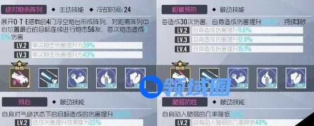 从技能组方面来看,战装无暇拥有较为优秀的输出性能,主动技能“绝对炮杀阵列”在一级时就有2184%的超高面板倍率与56发的攻击频率,结合所使用为步枪这一高射速武器,使得被动技能“枪管预热”可以频繁触发,配合“残心”的增伤效果,赋予了战装无暇十分稳定的输出性能。