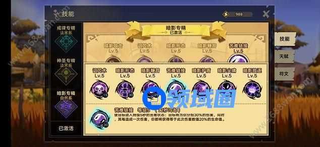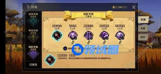 1、暗影攻击:三段式攻击,并且每次攻击都有几率获得暗影印记。如果你是欧皇,这个技能可以迅速的叠加起暗影印记,提升自己的魔法抗性。