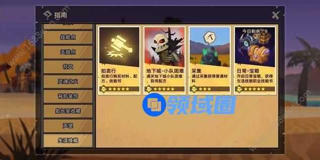 提到生活技能就不得不提以下4个功能:拍卖行、地下城-小队困难模式、采集、日常-宝箱。要想获得打造高级装备的材料,就必须要通过以上四个途径。
