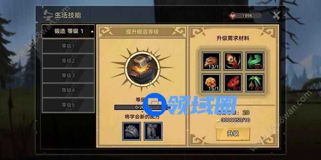 首先,玩家的锻造能力有初始等级,在此等级之下只能学会与等级对等的低级配方。因此玩家需要更高级的配方时,需要收集齐锻造等级升级所需的指定材料,比如铜矿石、火焰草、强韧草、火金石、灵麻草、魔心草,集齐数量之后可以花费一定数量的交易货币进行升级,升级后可以解锁更高级的装备配方。