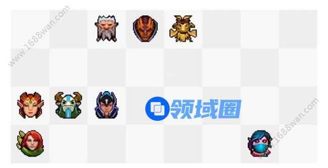 思路:首先你得明白奶德得主要输出就是月骑和风行,所有如果对阵的是刺客流就必须把输出往上提,肉往后拉,来保护后排,就像打第15波野怪一样,反向站位,但是有时候不止剩刺客一家,反向站位容易被其他阵容抓,所以我这里推荐包住输出来打,站位图如下