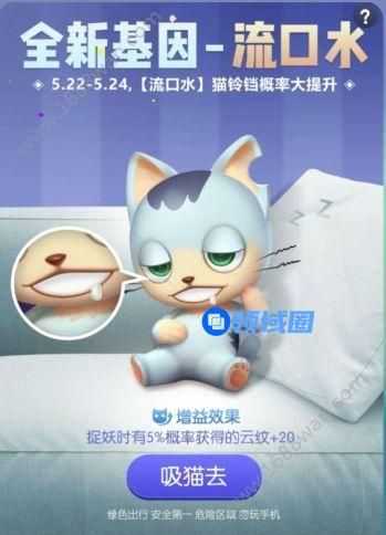 流口水这个猫咪可以在捉妖时有5%的几率获得云纹+20。