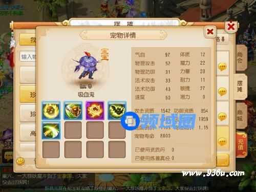 2、到69也必须佩带一只攻宠,如果有能力的可以带一只5红或者半红的吸血鬼,如果跟小编一样是穷人的话,推荐自己用66洗一只满技能全蓝的吸血鬼就好了。