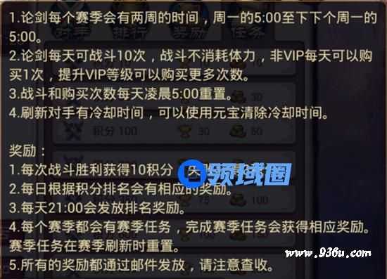 论剑规则如下:(每天争取更高名次可以获得更高奖励)