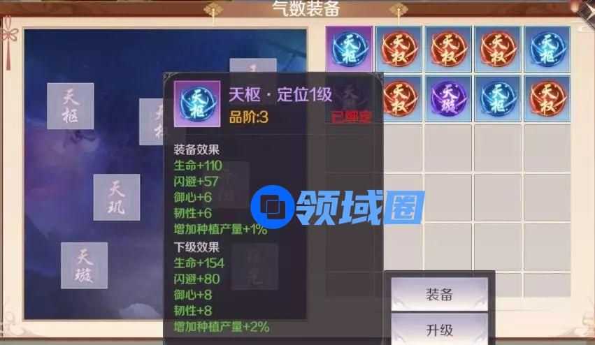 角色属性相信大家都清楚,而家园属性指的就是种植产量、养殖产量、种植成熟时间等多种属性,气数装备可以进一步加强家园属性哦!
