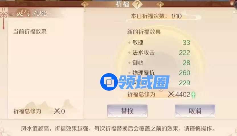 在祈福中,修真者能够通过祈福获得限时属性加成来提升实力。