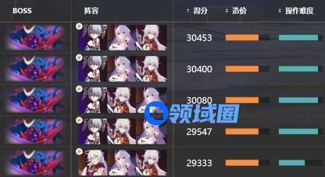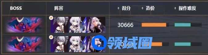为什么月煌的分数最高呢?首先是地藏为生物属性,月煌机械的属性克制得天独厚,另外月煌的高持续物理输出也为其获得高分得到了保障。地藏的元素抗性很高,所以我们必须使用物理角色,那么除了月煌我们还可以使用机械系物理增幅游侠天穹作为主C,或者生物系的平民战神白夜作为主C,至于空之律者,在对抗地藏的表现一般,先不予考虑,列表中也没有女王主C的打法。