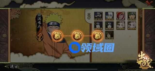 另外还有一个就是在忍者选择界面依次点击鸣人、佐助、卡卡西、小樱、鸣人,点击出战会出现三个拳头,把这三个拳头都点一下会直接激活鲛肌融合的鬼鲛,但是,用这个忍者通关的话只会完成日常,不能完成进度任务等。