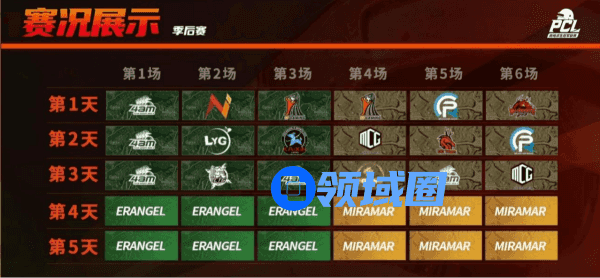 4AM战队;17战队;MCG战队;GFY战队;KX战队;PeRo战队。