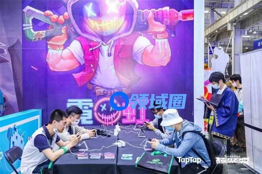 刚进入场馆的右手边,就是TapTap的主展台。一半的空间都留给了一款名为《Flash Party》的手游,现场设置了几张长条的方桌,摆成类似玩桌游的场面,举办名为“闪光行动”的测试活动。虽然目测一次可以容纳十几名玩家体验,但这里仍然是整个展会,单个国产手游排队最久的项目。