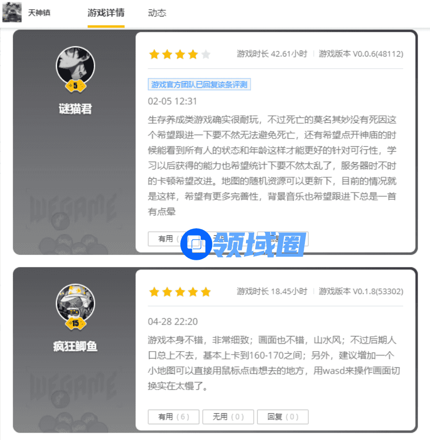 (《苏醒之路》开发团队几乎回复了WeGame平台上每条用户反馈)