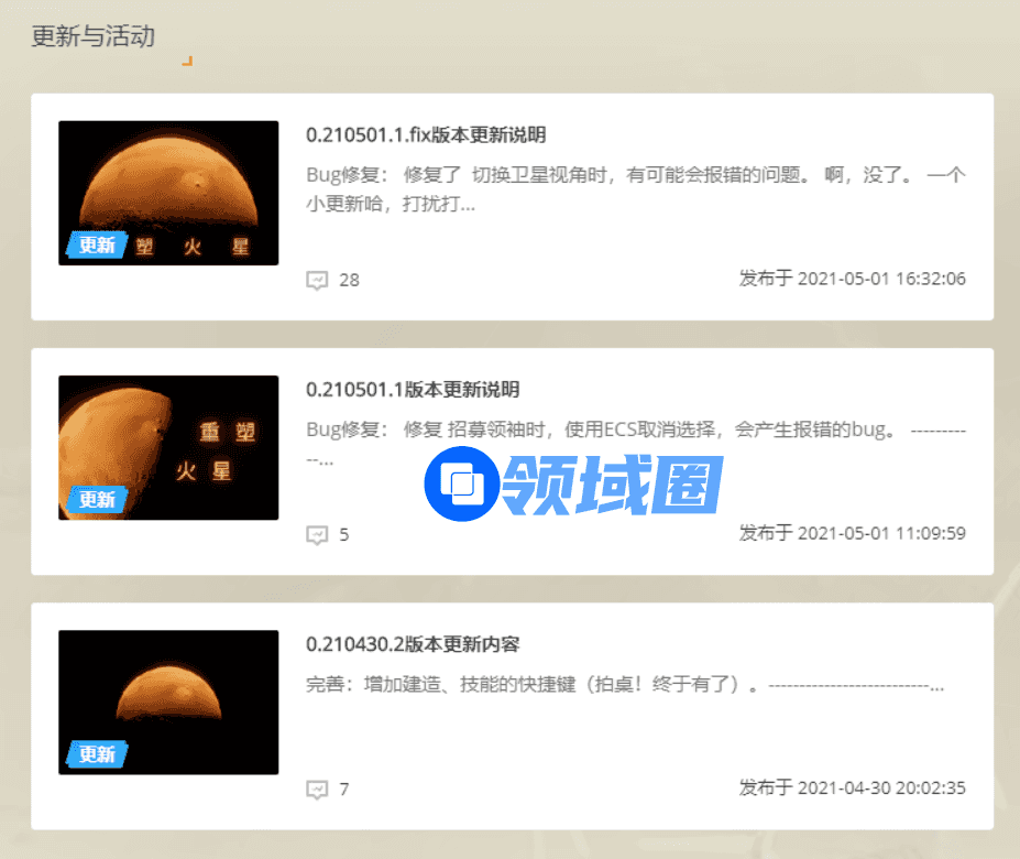 (《重塑火星》制作团队在WeGame平台上的游戏版本更新公告)