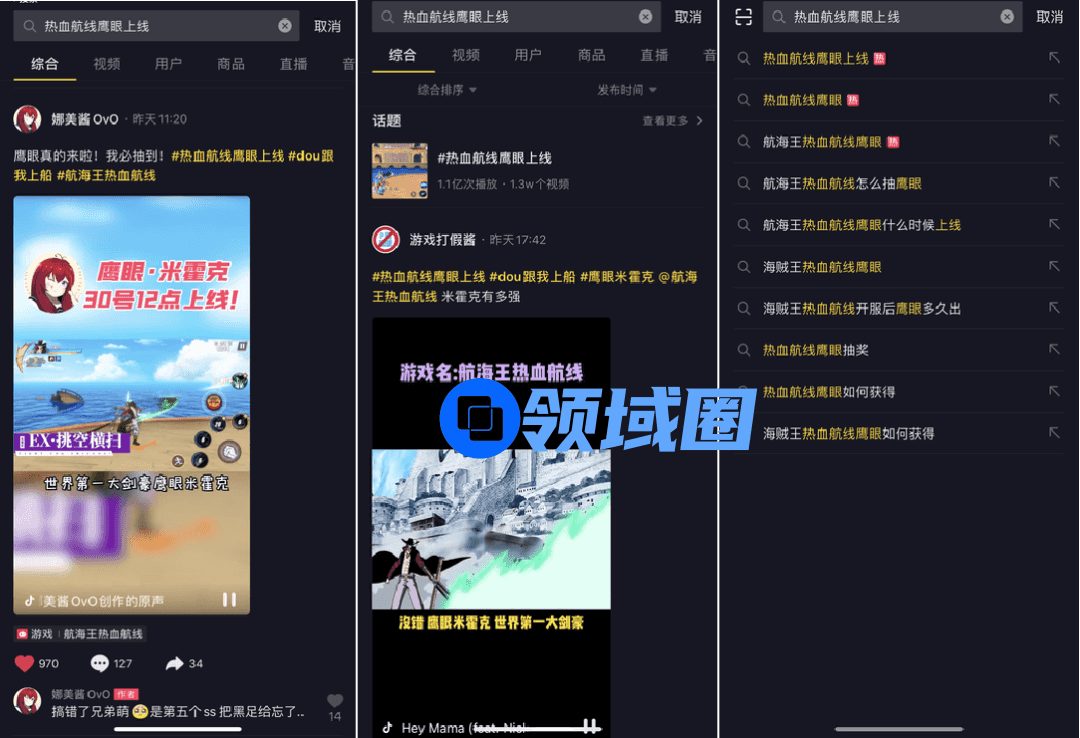 抖音旗下“游戏发行人计划”中大量的游戏、动漫、二次元、coser等各个领域的创作者共同制造与掀起了这场抖音内的“航海王”氛围感,这种内容型的发行打法相比于包场式的买量营销有着更强的流量沉淀,而这种沉淀让游戏就算过了营销爆发期后也能具备持续的传播能力。根据QuestMoblie数据显示,目前国内短视频用户规模已超8.5亿,直播用户规模超5.6亿。以抖音为代表的短视频平台,经此一役,或可初步证明了其作为游戏内容发行平台的能力和潜力。